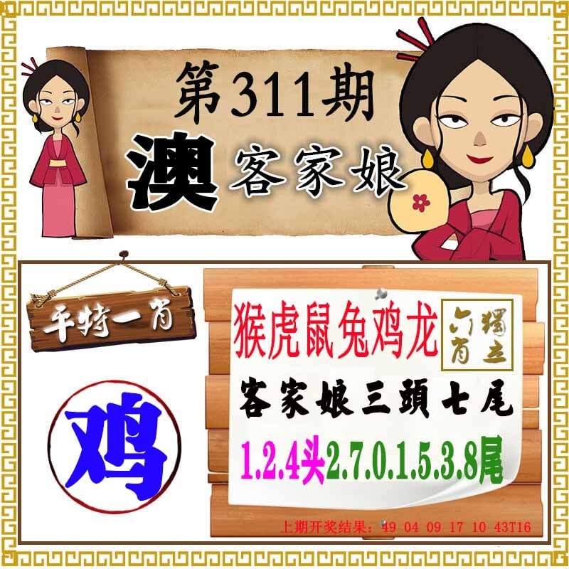 | 309期 | 鸡虎兔猪 | 开:鼠06 |