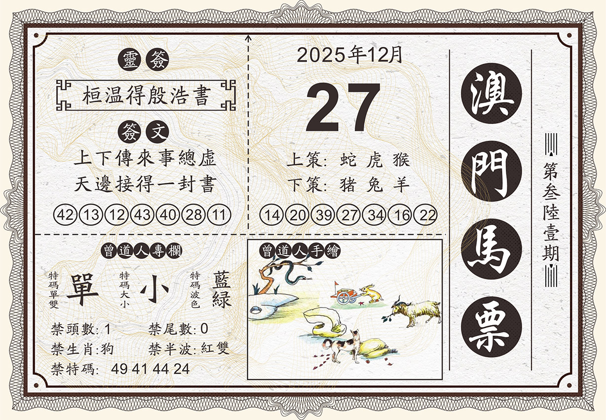 357期【单:牛鸡蛇羊+双:猴虎龙马】开:49蛇准